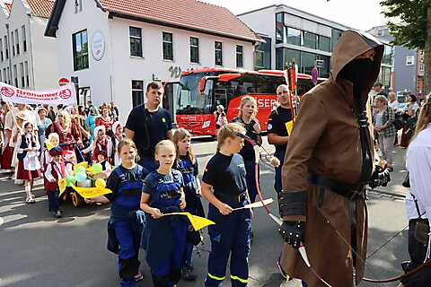 Die Kameradinnen und Kameraden des THW Ortsverband Stralsund durften am Freitag (22.07.2022) den traditionellen Festumzug in historischen Gewändern absichern.